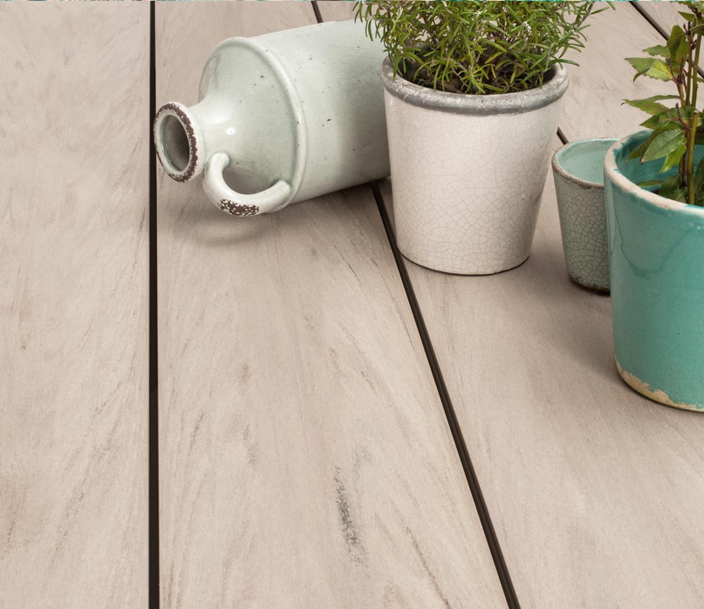 With two classic profiles and five warm trendy colors our classic decking fits to every garden. Our new color “sand” looks nearly the same as real wood. Classic sand outside looks great in combination with oak flooring inside.