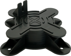Die Unterkonstruktion ist die Basis jeder Holzterrasse. Sie fixiert nicht nur die Terrassendielen, sondern sorgt auch für eine ausreichende Unterlüftung des Holzes. Sie wird auf festem, ebenem Untergrund mit leichtem Gefälle vom Gebäude weg verlegt. Das Konstruktionsholz darf nicht direkt auf dem Erdreich aufliegen, sondern sollte z.B. auf Gehwegplatten als Auflagefläche verlegt werden. Gummigranulat-Pads gleichen eventuelle Unebenheiten aus.