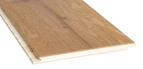 1-Stab Landhausdiele im 3-Schicht Aufbau, ca. 3 mm Nutzschicht Eiche, Mittellage 9 mm Pappel / Kiefer, Gegenzugfurnier 2 mm Pappel.