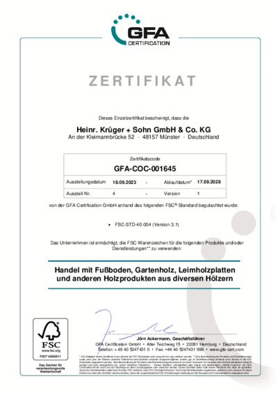 Holz ist unsere große Leidenschaft. Wir lieben es und stehen für einen respektvollen und umweltgerechten Umgang mit der Natur. Als einer der ersten Anbieter sind wir bereits seit 2008 FSC®-zertifiziert (Lizenzcode FSC® C022992). Das Gütesiegel FSC® steht für eine umweltschonende und verantwortungsbewusste Nutzung unserer Wälder.